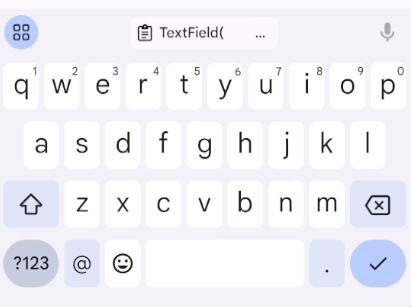 TextField( keyboardType: TextInputType.emailAddress, decoration: InputDecoration( border: OutlineInputBorder(), labelText: 'Email', ),),This results in our Keyboard looking like this: