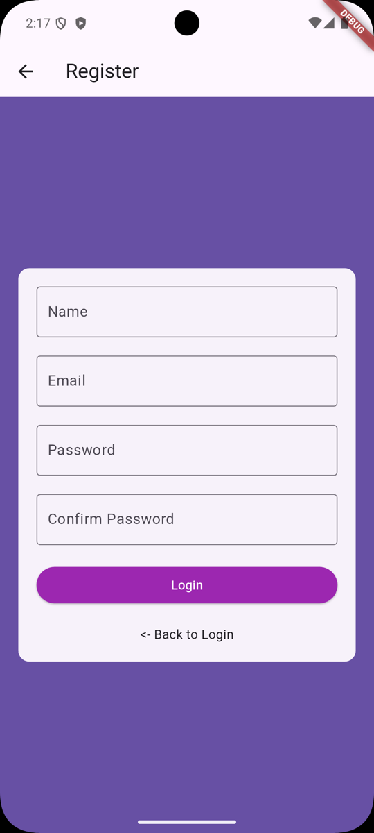 To navigate back to the Login page from the Registration page, we have added a small InkWell widget to the Registration page. This widget will navigate back to the Login page when clicked.
